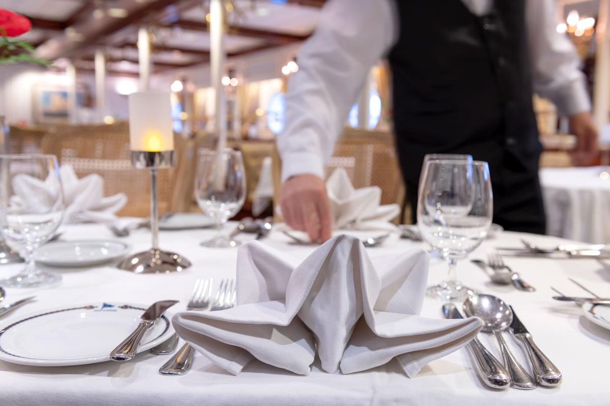 On all our ships, feel free to dine whenever and with whom ever you want—including our Officers, who join guests in the dining room each night. No need for formal gowns and black tie here, casual elegance is acceptable day and night.