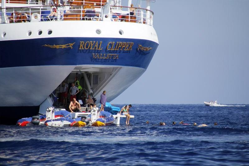 Our tenders or zodiac service allow you to go ashore in comfort and disembark either in port or directly on the beach, so you are free to set off and explore each destination. On Royal Clipper, a specially designed marine platform can be lowered to sea level, so you can enjoy water sports directly from the ship!